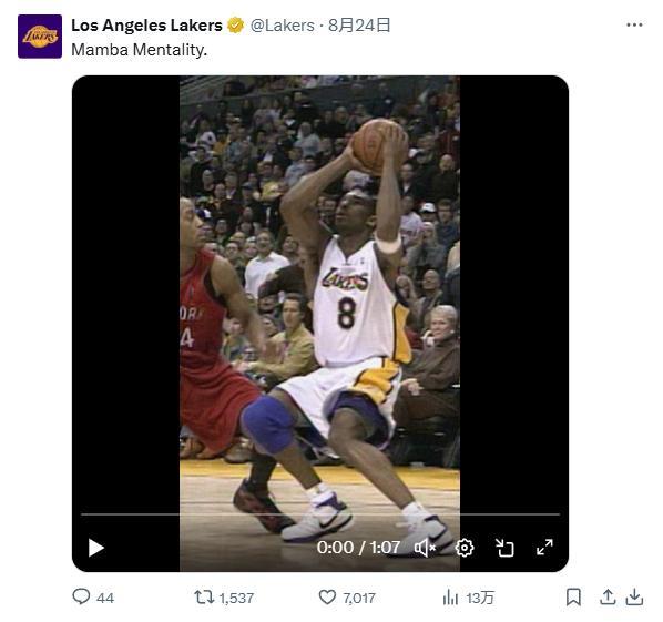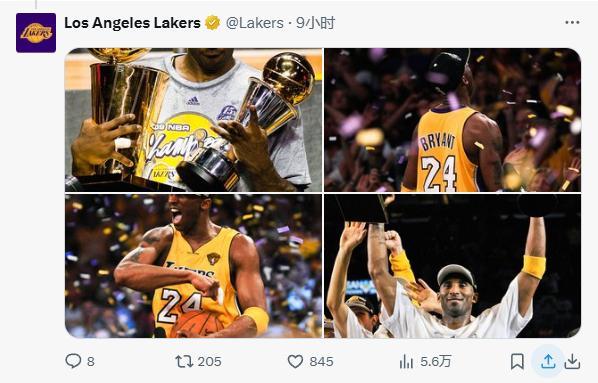 1、湖人官方:“洛杉矶之心,生日快乐,科比 ”
