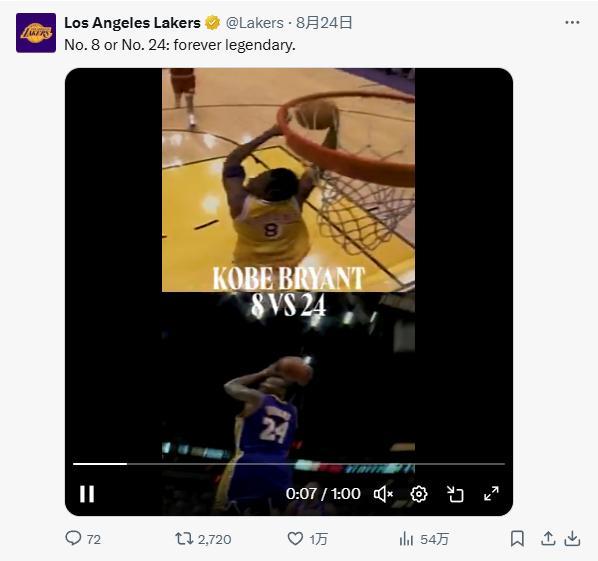 在这两个特殊的日子里,湖人官方账号总计更新了15条推文,全部与科比有关: